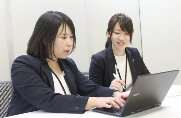私の所属する人事課は、人事総務部という組織に属しています。人事課は総勢約17人です。人事係・教育係・採用教育係と分かれていて、私のいる採用教育係は採用から入社3年目までの若手社員の教育を担当しています。採用教育係は3人で、全員が女性です。