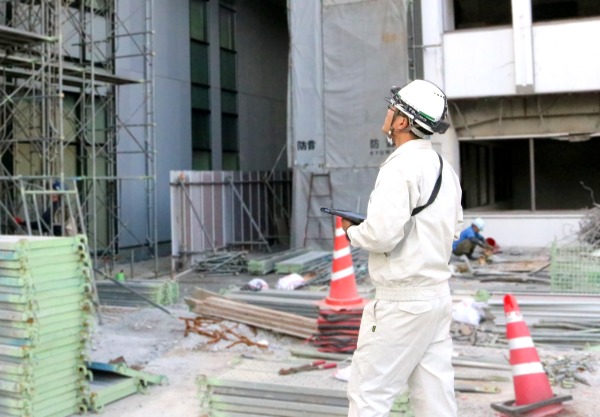 この現場では所長を含め、当社から3人が現場監督として配属されていましたが、新しい建物がほぼ完成し、前の建物の解体に入ったところで1人は別の現場に移動したので、今は所長と2人です。