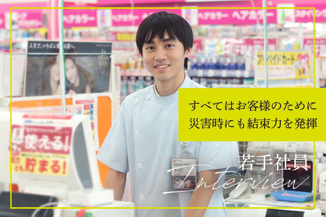 公務員も考えていたのですが、民間企業であればドラッグストアがいいと思っていました。先般、マツモトキヨシさんとココカラファインさんが経営統合に向けて協議に入るという報道がありましたように、ドラッグストア業界は競合が激しく、変化が速い業界ですが、それだけに働きがいがあると思いました。販売する商品を通じてお客様の暮らしに直接お役に立てるということも魅力に思いました。