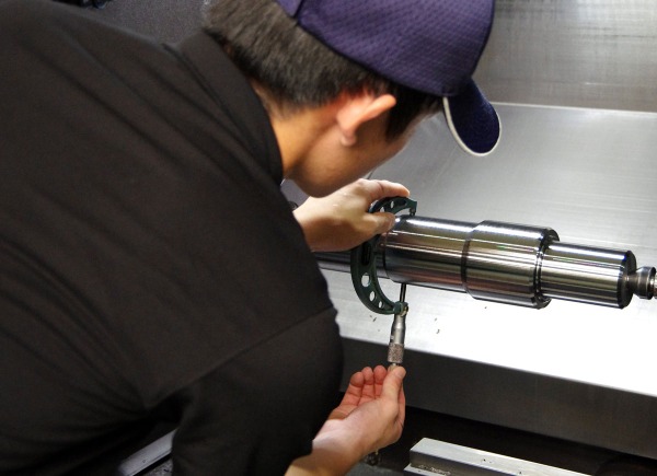 機械はコンピューター制御で数値を入力すればその通りに動いてくれます。ただ、温度などで原料の状態が微妙に変わりますし、原料を削る刃物も少しずつ摩耗していきます。なので一気に仕上げるのではなく、まずは所定の寸法よりも大きめに削って、一度測定をします。その結果を元に、機械を微調整して仕上げます。この微調整が難しいですね。先輩や上司に教わりながら経験を積んでいます。