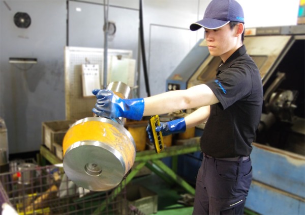 「製造8係」に所属しています。8係は私を含めて4人いて、重機などに取り付ける歯車を製造しています。歯車の種類はたくさんあります。