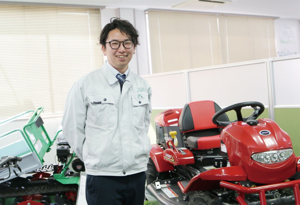 主力製品である草刈り機の国内トップシェアを誇るアテックスで、営業を担当している中堅社員さんにお話を聞きました。